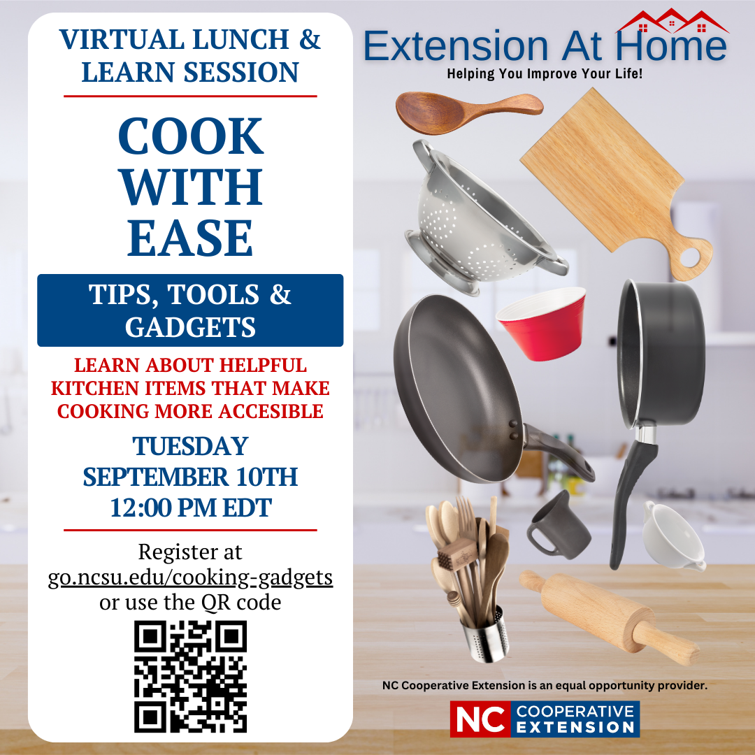 Collapse ▲There’s an upcoming class next week! Learn more about cooking with ease using all types of tips, tools and gadgets! You won’t want to miss out on this virtual lunch and learn. To register visit the link below or scan the QR code.